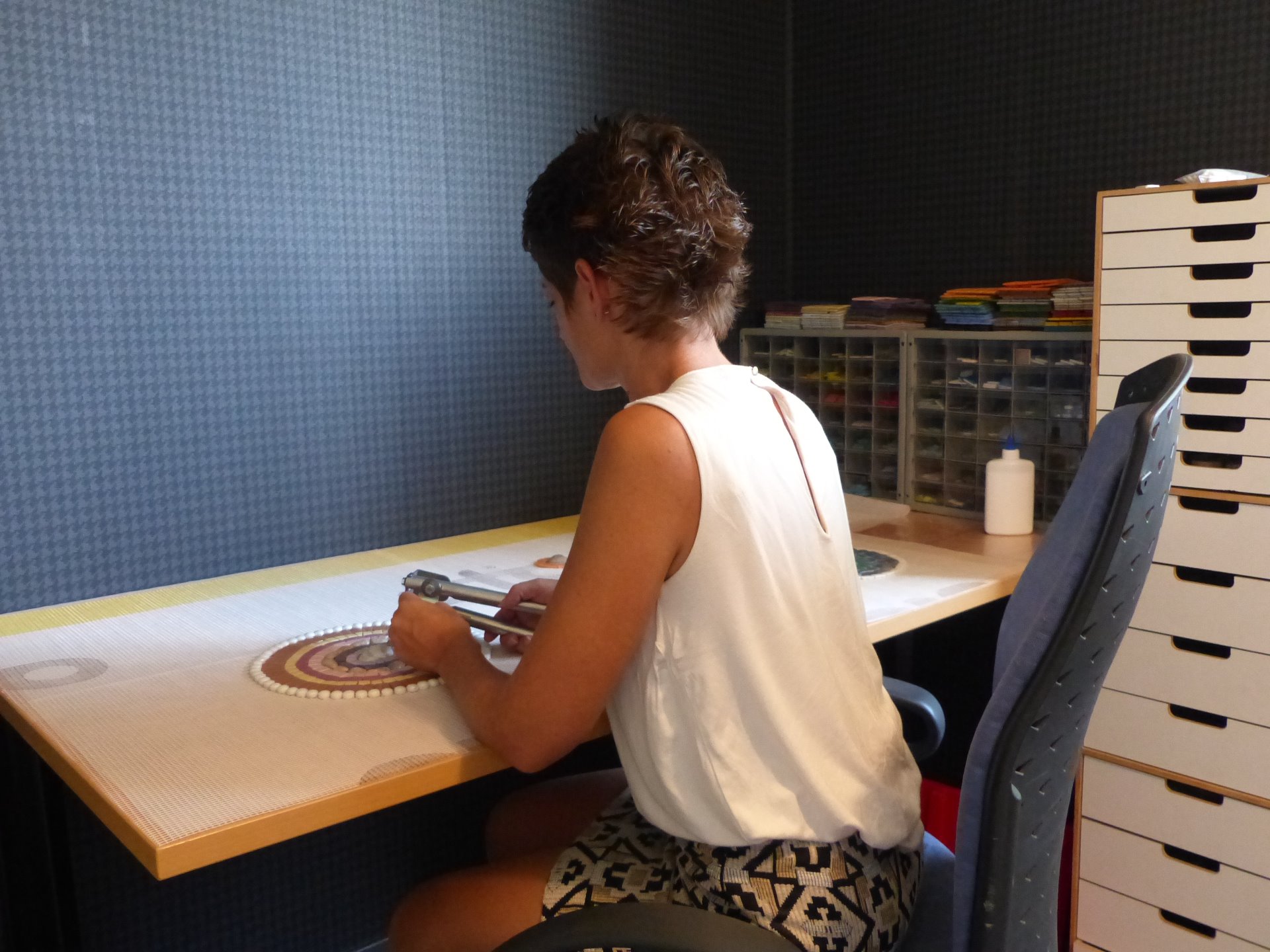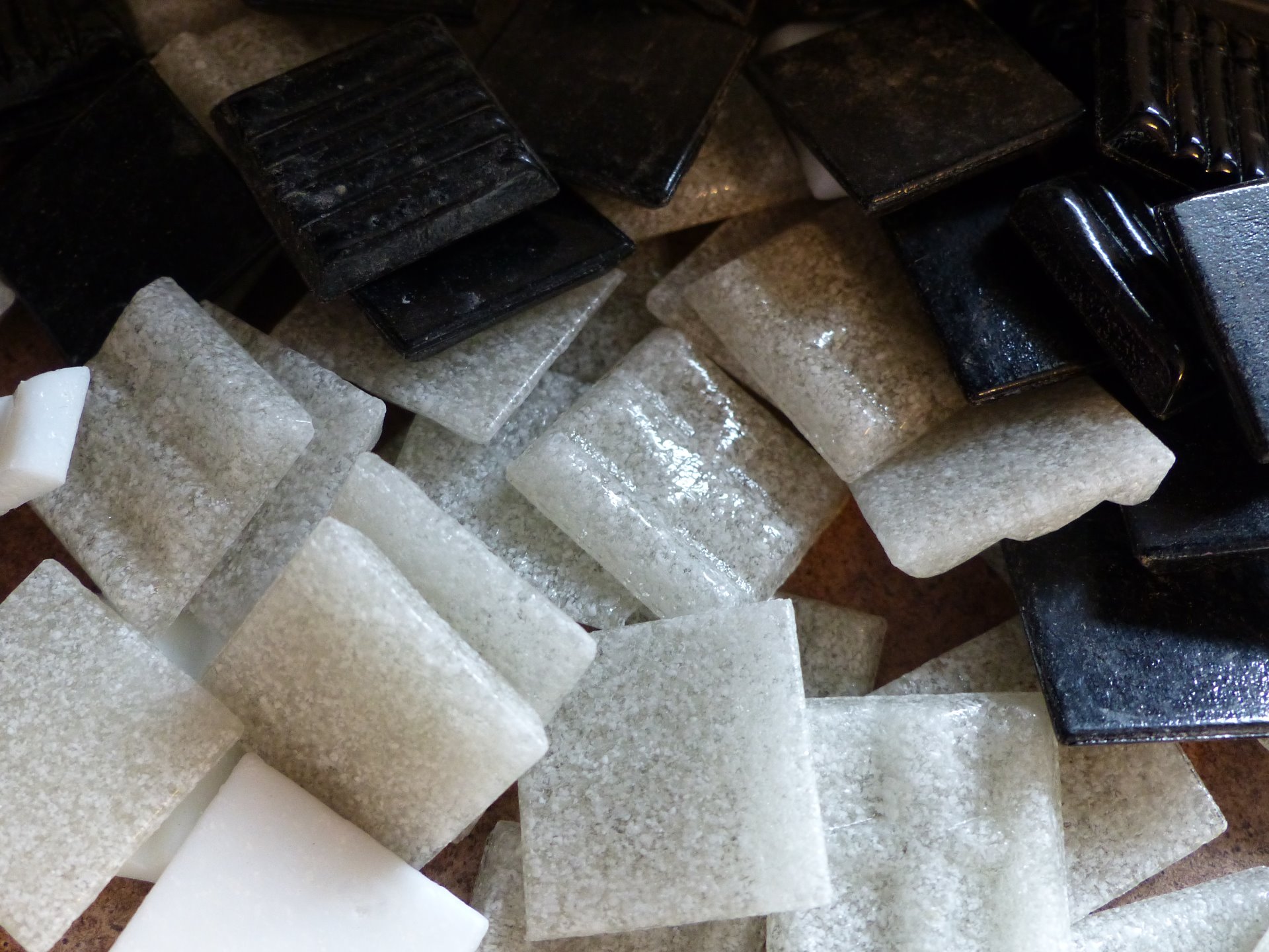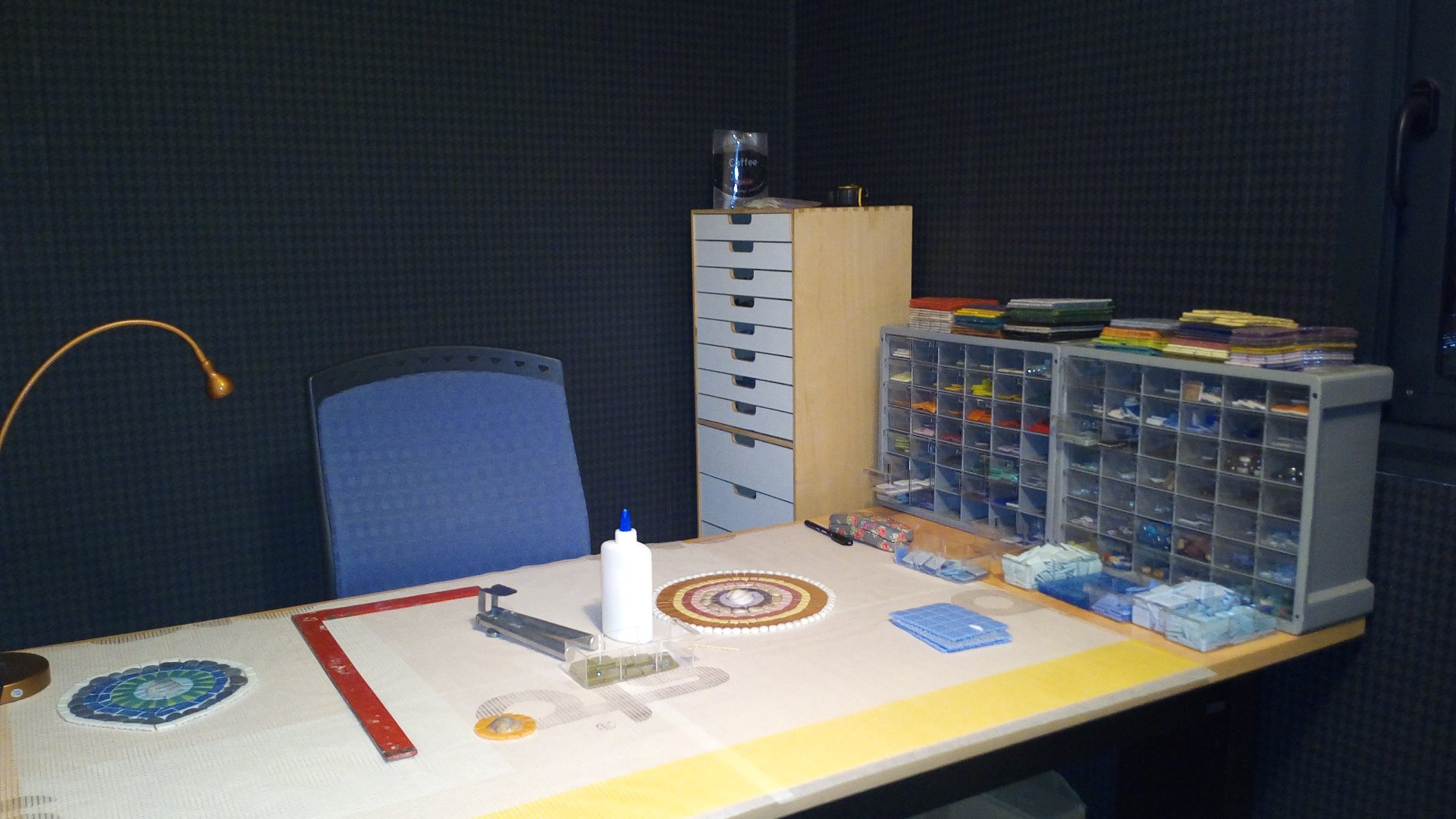 C'est dans mon atelier que j'aime mélanger les matières tesselles, émaux de Briare, pâtes de verres, cailloux, coquillages, bois ... et toutes autres matières qui ouvrent mon imaginaire.